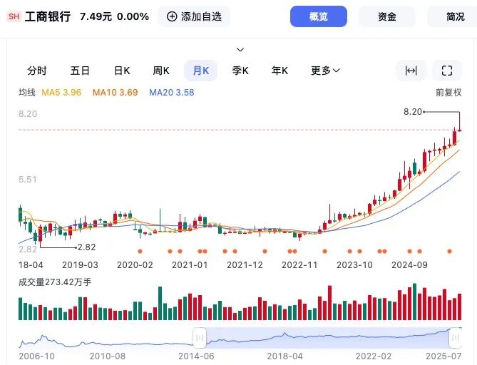 看看宇宙行A股的走势,两年多从两三块钱到八块多,如同大象在针尖上跳舞。