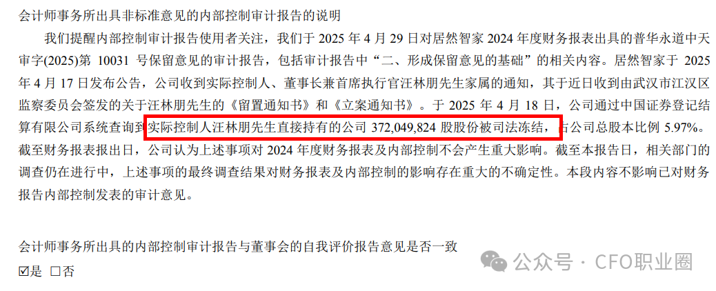 但在随后披露的年报显示,截至2024年,汪林朋直接持有3.72亿股公司股份。公司于2025年4月18日通过中证登系统查询到上述股份被司法冻结,占公司总股本比例5.97%。