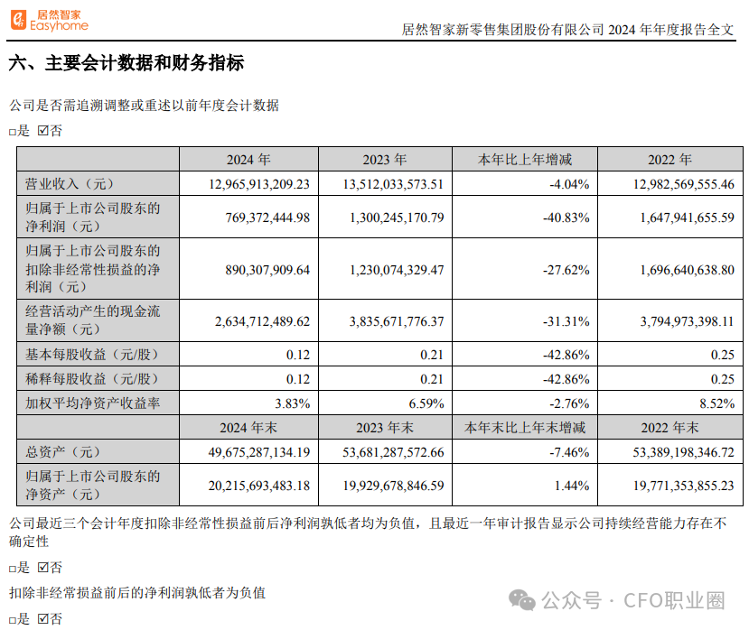 Choice数据显示,2022年至2024年,居然智家实现营收分别为129.81亿元、135.12亿元、129.66亿元,归母净利润分别为16.48亿元、13亿元、7.69亿元。2025年一季度,公司实现营收33.12亿元,同比增长5.58%;归母净利润为2.12亿元,同比下降39.39%;扣非归母净利润为2.13亿元,同比下降42.84%。