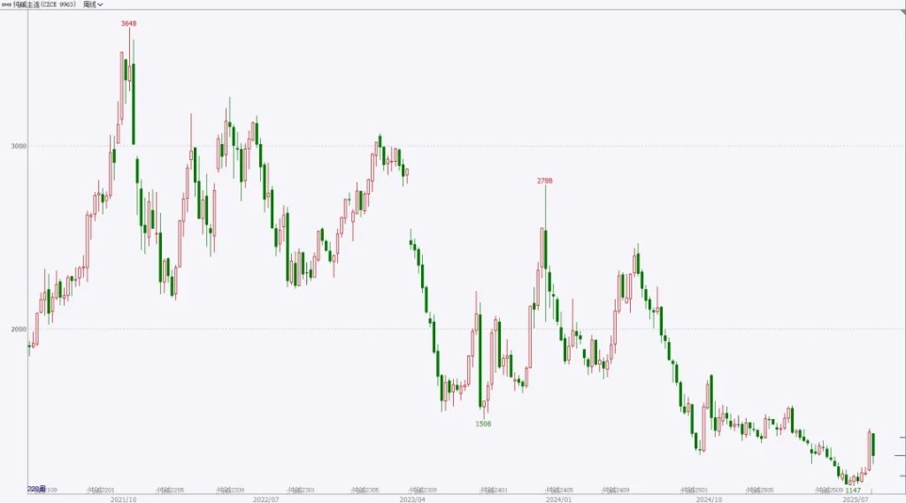 ③ 政策与情绪易导致超调:2023年2309合约从1550元反弹至2300元、2025年7月政策在情绪面利多后急跌均是典型案例。