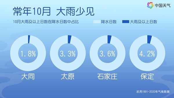 这轮降雨多以平缓的稳定性降雨为主,没有夏天的雨那么激烈,将是秋雨连绵的感觉。但由于降雨时间长,累计雨量也将十分可观,部分地区降雨量或为同期少见。像陕西北部、山西北部、河北西部、内蒙古中部偏南等地,无论是过程累计降雨量还是单日降雨量,都具有一定极端性。