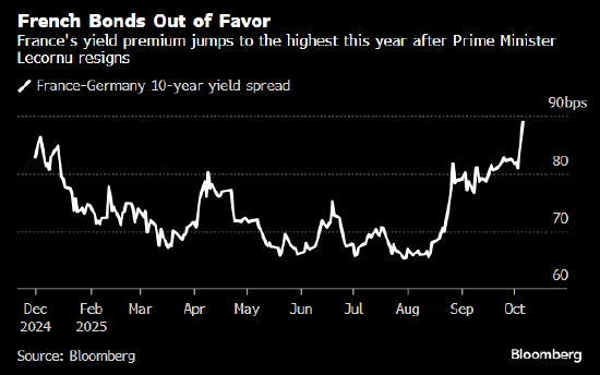 僵局已阻碍了遏制欧元区最大预算赤字的努力,引发法国资产抛售潮,并推高该国相对于其他国家的借贷成本。