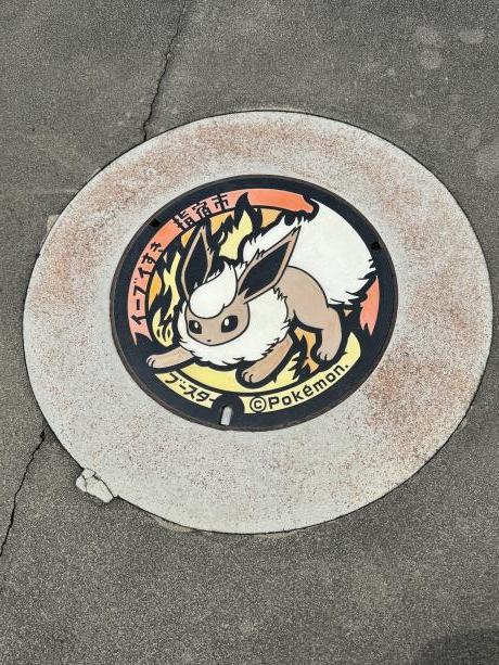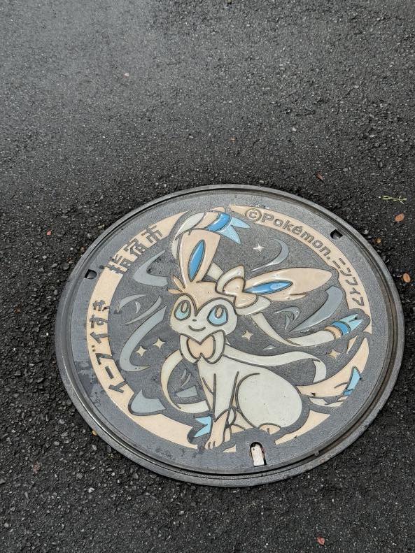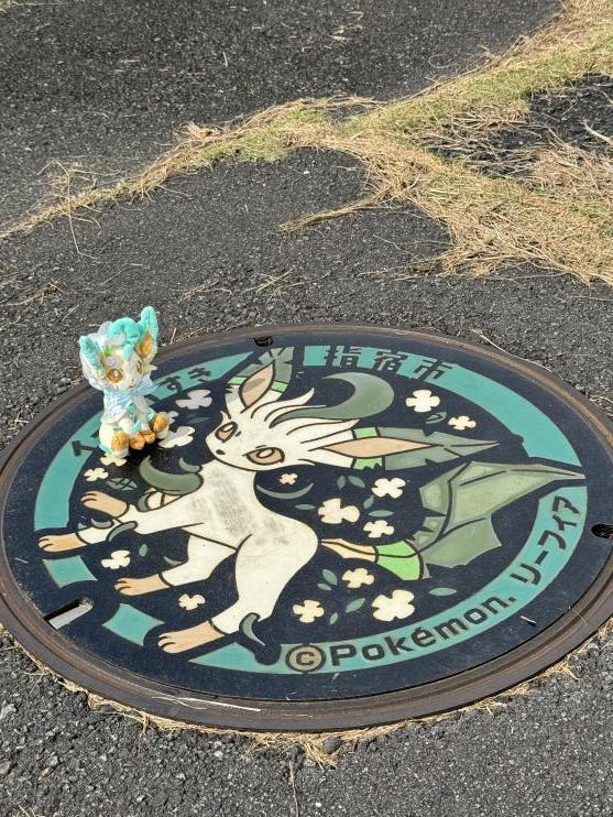打卡之旅的最后两站,相距4公里,而离回程发车只剩60分钟,这段距离让我们无法步行往返。然而,“来都来了”怎能甘心,我们说什么也不愿意放弃市内最北端的雷伊布和叶伊布。说来惭愧,我和同伴虽自诩热爱者身份,却是日语“苦手”。我们一边画地图、一边用翻译软件,焦灼地筹划如何让出租车司机明白目的地。结果证明,我们完全低估了他的专业。司机先生想必已载过无数慕名而来的粉丝,对每个伊布井盖的位置都烂熟于心,最终将我们这两个忐忑的异乡人精准送达。