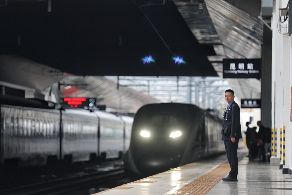 澎湃新闻从中国铁路昆明局集团有限公司(以下简称“国铁昆明局”)获悉,随着国庆假期进入尾声,云南铁路迎来国庆假期返程高峰,10月8日预计发送旅客59万人次,铁路部门采取系列措施,全力保障旅客安全、有序、温馨出行。