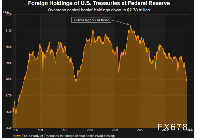 纽约联储代全球央行持有的美国国债规模已降至十多年来最低水平,令市场对外国投资者是否仍青睐美债及其他美元资产的疑虑再度升温。