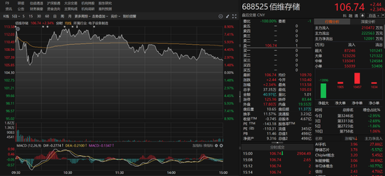 从佰维存储的市场走势看,其午后同样遭遇调整,从盘中最高涨幅近9%,至收盘上涨2.34%。