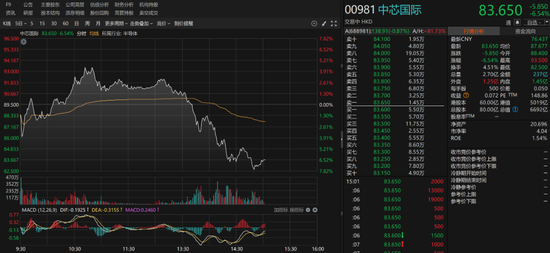 从中芯国际H股走势看,同样经历了大幅调整。上午最高涨幅超4%,下午14:50时大跌近8%。