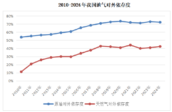 3000亿千瓦时年发电量,将有效提高水能在我国能源结构中占比,且减少能源对外依存度。中国原油和天然气对外依赖较高,2024年虽有降低,但能源安全问题仍十分严峻。