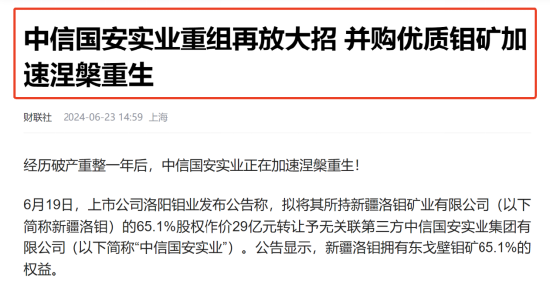 如前所述,在重组之际,中信集团曾表示,将为重整后的中信国安实业集团注入重要资源,协助其尽快回归健康可持续发展轨道。此次东戈壁钼矿的并购表明,中信集团正在兑现当时的承诺。待股权转让完成后,中信国安实业版图将新添一处矿山资产,东戈壁钼矿与中信国安实业集团旗下青海锂业、白银有色(601212)共同构成矿产资源板块,在先进材料、新消费、新型城镇化三大板块形成协同。