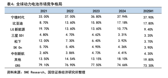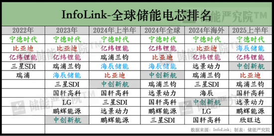 InfoLink数据显示,中创新航全球储能电芯出货排名由2023年的第10位,升至2024年第5位、2025年一季度第3位,2025年上半年稳居第4位。