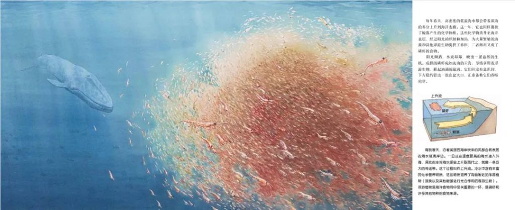 全书以蓝鲸的生命终点为起点,科学还原了鲸落四阶段的生态演变:从鲨鱼撕咬软组织的“移动清道夫阶段”,到食骨蠕虫钻透骨骼的“机会主义者阶段”;从嗜硫细菌制造化学能量的“化能自养阶段”,到最后骸骨化为礁岩的“礁岩阶段”。书中不仅呈现了食骨螺、深海螃蟹等奇特生物,更通过鲸须滤食、磷虾迁徙等细节,揭示海洋食物网的精密联结。作为一本系统解析鲸落的科普书,本书以诗意与理性交织的方式,诠释了“死亡并非终结,而是馈赠”的自然法则,让孩子们真正理解——生命的消逝,也可以是万物生长的开始。