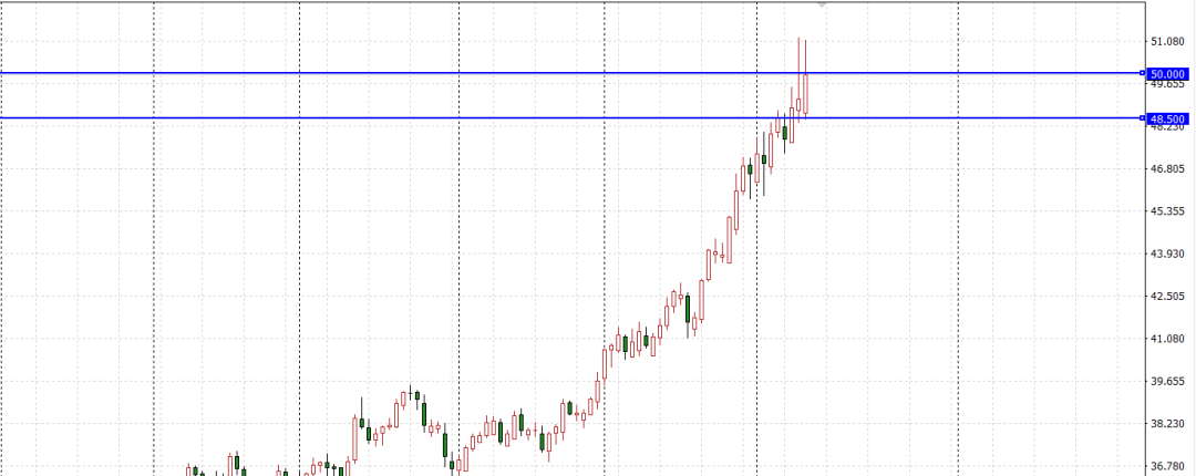 如若白银短期回归技术层面而非过热追涨性冲刺,则需在连续3个交易日内成功站稳至50美元大关后,才有望形成新一轮趋势性突破确认,为银价进一步上行测试52.20美元目标提供积极信号。需要谨慎的是,短期超涨-回归均值风险积累导致多头动能消退以及技术性回调预警尚存,如若为其提供支撑的48.50区域防线失守,则需紧惕市场买方主力资金逐步撤离,从而导致银价面临进一步回调测试47.30目标区域的风险加剧。而在此之前,白银整体价格走势仍维持“多头对待”。