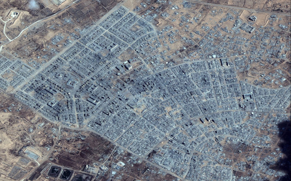 当地时间2025年10月10日,加沙地带南部拉法,卫星图像显示当地的破坏情况。视觉中国 图