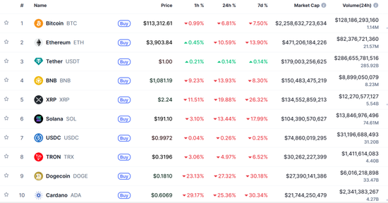 10月11日凌晨,加密货币市场集体暴跌,比特币一度跌超13%,失守11万美元关口,最新报113700美元/枚。