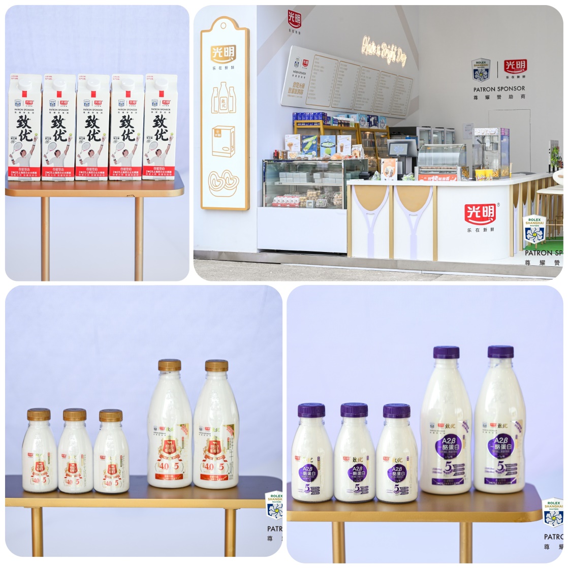 更值得关注的是,光明乳业还专为本次上海大师赛推出了限定款包装的光明致优全鲜乳,包装上张之臻挥拍的动感瞬间与赛事氛围完美契合,拿在手中既是饮品,也是一份独特的赛事周边,吸引不少球迷争相选购。