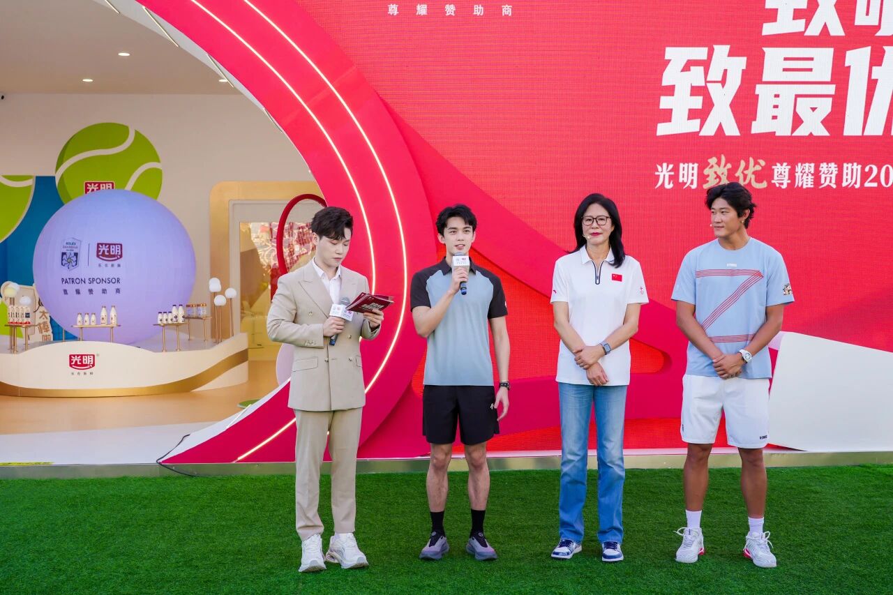 当ATP1000级赛事的激情席卷申城,百年乳企的鲜活力量正与竞技精神深度共鸣。9月29日至10月12日,2025上海劳力士大师赛在旗忠网球中心上演巅峰对决。作为自2018年起便与赛事深度携手的尊耀赞助商,光明乳业于10月10日重磅开启品牌日活动,以“致最优”的初心,为这场亚洲顶级网球盛事注入独特的“光明活力”。著名排球教练郎平、中国网球名将暨“光明鲜活大使”张之臻、光明优倍品牌代言人吴磊齐聚光明展台,与光明乳业党委书记、董事长黄黎明,党委副书记、总裁贲敏,以及致优品牌经销商与光明随心订幸运消费者代表,共同见证“鲜活营养”与“竞技精神”的深度交融。