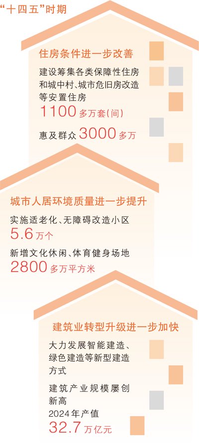 “十四五”时期,住房城乡建设系统牢牢抓住“安居”这个人民群众幸福生活的基点,坚持市场与保障相结合,多措并举、多点发力,提高人民群众居住水平。