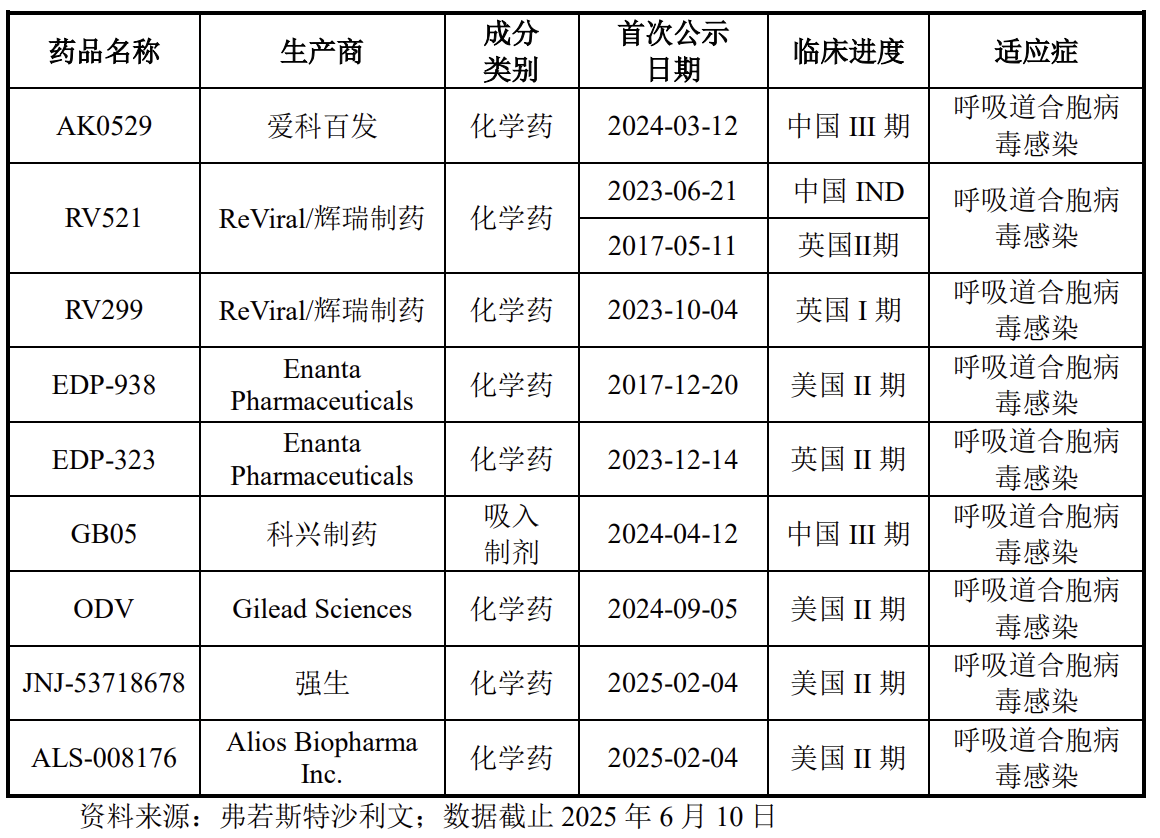 相较于单抗产品已实现规模化突破,用于RSV治疗的小分子抗病毒药物的发展则略显单薄。