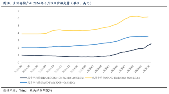存储芯片:传统消费电子周期复苏与AI服务器需求超预期增长双重拉动存储芯片进入行业增长的强周期,而供给侧产能无法迅速扩张释放,存储原厂价格纷纷调涨。需求侧,AI赋能下消费电子周期逐渐回升,推动传统存储产品DDR4/5的需求增长,具体消费电子产品看:iPhone 17首销阶段供不应求;Meta新发布的智能眼镜线下零售已全部断货。AI训练和推理对高端存储产品(HBM/NAND闪存)用量激增。为此,在供给层面厂商牺牲主流内存产能以满足高价值HBM订单,直接导致消费级和企业级DRAM供应紧缩,价格持续攀升。DDR5方面,三星、SK海力士将部分产品第四季度协议价上调15%-30%,美光部分产品暂停报价后涨幅达20%-30%。NAND方面,闪迪在9月上调NAND闪存报价,幅度约为10%,消费级与企业级产品均有涉及。未来,人工智能发展将继续拉动存储需求,为确保存储芯片稳定供应,Open AI与三星和SK海力士签署芯片供应意向书,据声明透露,随着星际之门项目在全球扩张,来自OpenAI的总需求可能达到每月90万片晶圆。