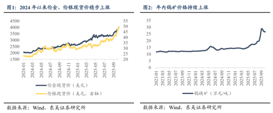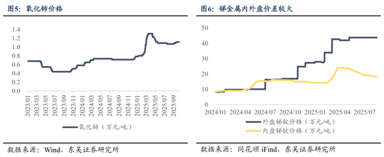 独立景气属性的钴、钨、锑及稀土价格存上行空间。钴价在刚果金由限制出口转向10月中旬出口配额制落地后,价格中枢上移可期。钨在配额收缩叠加出口管制背景下,叠加下游硬质合金及钨材需求稳步增长,价格在8月末突破20万元/吨后仍有望继续增长。此外,伴随锑打击走私行动的成效,后续合规出口审批将逐步放开,内外盘宽幅价差收敛叠加出口量修复,锑金属预计将在第四季度迎来量价齐升行情。稀土则具备中期景气及战略价值重估两层逻辑,一方面国内稀土存在供给刚性,量稳价增之下景气度持续验证,10月10日北稀、包钢继续大幅上调2025年四季度稀土精矿交易价格体现涨价趋势延续,另一方面,自关税战以来稀土管制成为重要的战略制衡手段,近期随中美APEC会谈临近,我国稀土出口管制进一步加强,大国博弈背景下稀土战略安全重要性凸显,板块价值重估仍在进行时。轻、重稀土与永磁材料均有涨价预期。