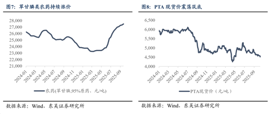 反内卷有望推动PTA行业景气触底、价格回暖。PTA伴随产能扩张近年来价格持续回落,当前龙头厂商效益提升诉求明显,且行业集中度高,为反内卷工作开展带来良好基础,市场预期PTA行业开启联合减产,价格有望实现筑底回升。农药在25H1基本实现库存去化,行业进入景气周期,草甘膦等核心品种近期持续涨价,截至2025年9月30日,草甘膦原药价格达2.75万元/吨,较年初增长超15%。