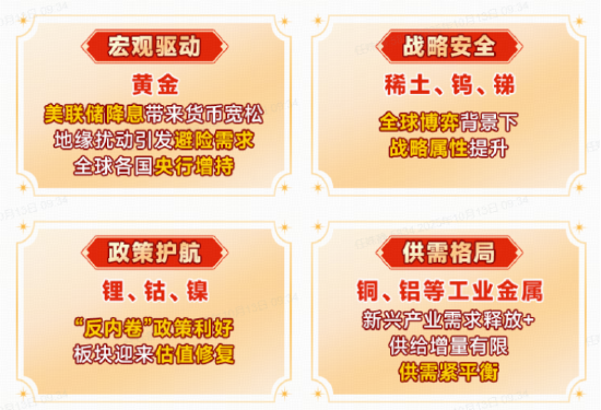 证券指出,有色金属行业景气度维持高位,贵金属受美联储降息、地缘冲突及关税政策影响,国际金价突破4000美元关口;工业金属方面,铜铝价格因印尼矿山停产引发的供给约束及弱美元环境延续上行;稀土因出口管制政策收紧价格保持强势。有色金属采选和冶炼加工业呈现量价齐升态势,利润增速维持较高水平。