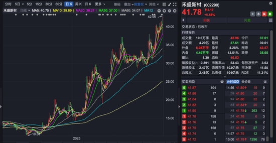 禾盛新材主营业务为家电用外观复合材料(PCM/VCM/PPM)的研发、生产及销售。截至2025年6月30日,公司拥有四条PCM/VCM 生产线、一条智能化复合材料生产线及一条3D打印生产线。公司产品已经覆盖国内外各大知名家电品牌,市场占有率较高。