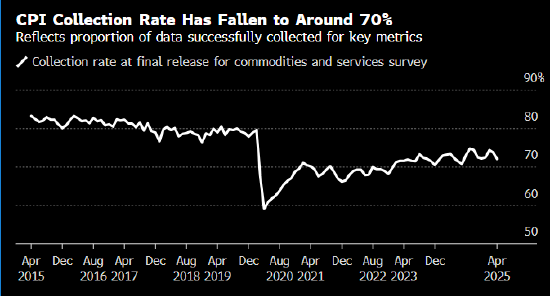 该机构并非总能获得其想要衡量的所有价格。显示实际收集了多少可用数据的收集率下降,这可能会进一步对数据质量构成风险。