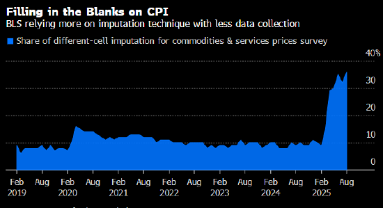 这一工作已因特朗普政府的裁员而面临挑战。受资源限制,劳工统计局近几个月暂停了部分CPI样本采集,并因此更多依赖某种插补法来填补空白。
