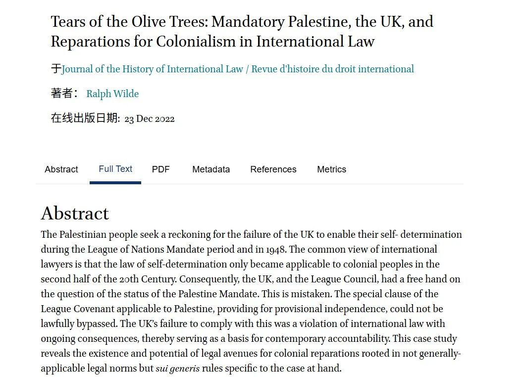 事实上,一直以来,业界都在探讨“英国违反国际法并应对巴勒斯坦作出赔偿”的法律适用性。