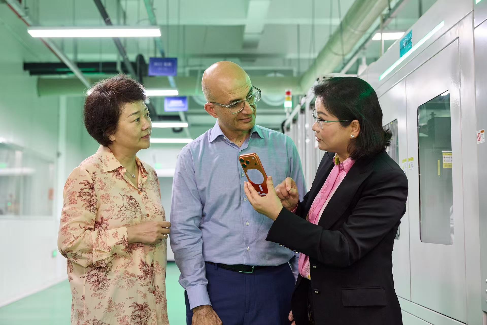 苹果公司COO Sabih Khan 与瑞声科技董事长潘政民参观瑞声科技位于江苏常州的均热板模组生产工厂