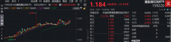ETF方面,被动跟踪标普港股通低波红利指数的港股通红利ETF(159220)场内同步收涨1.11%,以溢价收盘。从日线维度来看,更是自9月11日以来的回调与反弹后创下了收盘价新高。