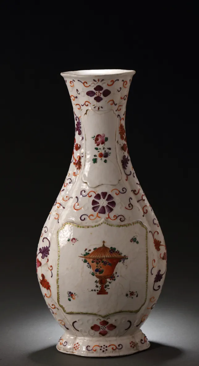 清乾隆广彩浆胎花卉奖杯纹瓜棱扁瓶 广东省博物馆(一级)