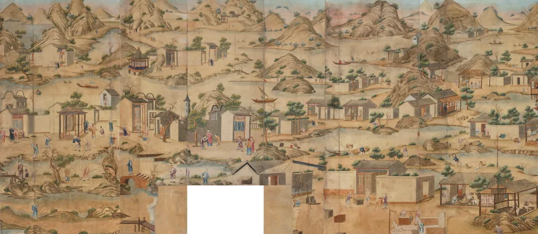 清乾隆广州手绘农耕商贸图外销壁纸 2011年购自英国 广东省博物馆(一级文物)