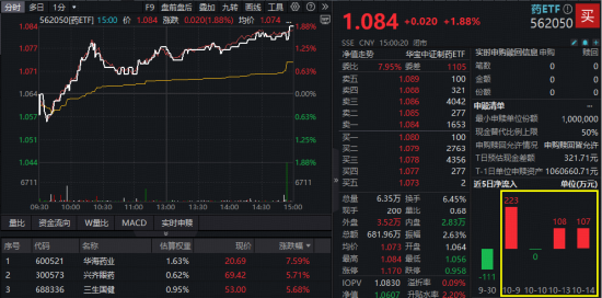 A股创新药集体走强,领涨7.59%,、、齐涨逾5%,全市场唯一药ETF(562050)重仓创新药,场内涨1.88%终结四连跌。