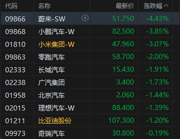 新能源车企股走弱,蔚来跌超4%。摩根大通研究报告,预期内地车企第三季业绩将大致符合预期,且盈利能力较次季有所改善。政策方面,该行认为有一半机率国家补贴或其他形式的刺激措施将会持续;如有的话,或将于明年1月公布。该行又预期国内乘用车需求将持平或下降3至5%。因此,出口和提升国内市场份额对车企而言将会是关键。