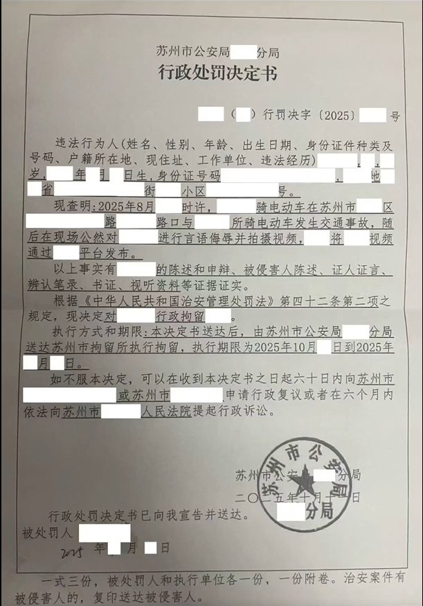 “我听交警的”事件,等来了让人舒适的结局——公然侮辱他人的拍摄者被行政拘留。