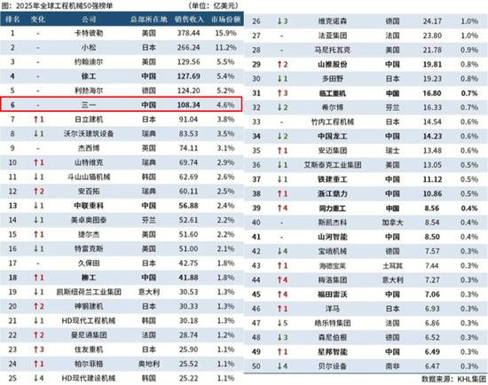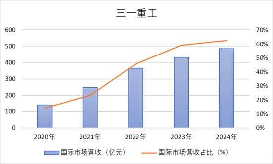 根据弗若斯特沙利文数据,按照2020-2024年核心工程机械的累计收入计算,三一重工已成为全球第三大及国内第一大的工程机械企业。