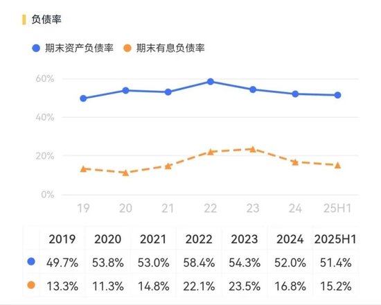 与此同时,公司的长短期借款合计不过190亿元,有息负债率仅为15.2%,整体资产负债率51.4%,也处于健康水平。
