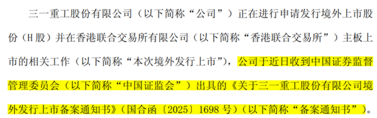 10月8日晚,(600031.SH)披露,已获得中国证监会出具的《境外发行上市备案通知书》,标志着其港股IPO迈出关键一步。这也是公司自2011年终止上市进程后,再度开启港股IPO之旅。