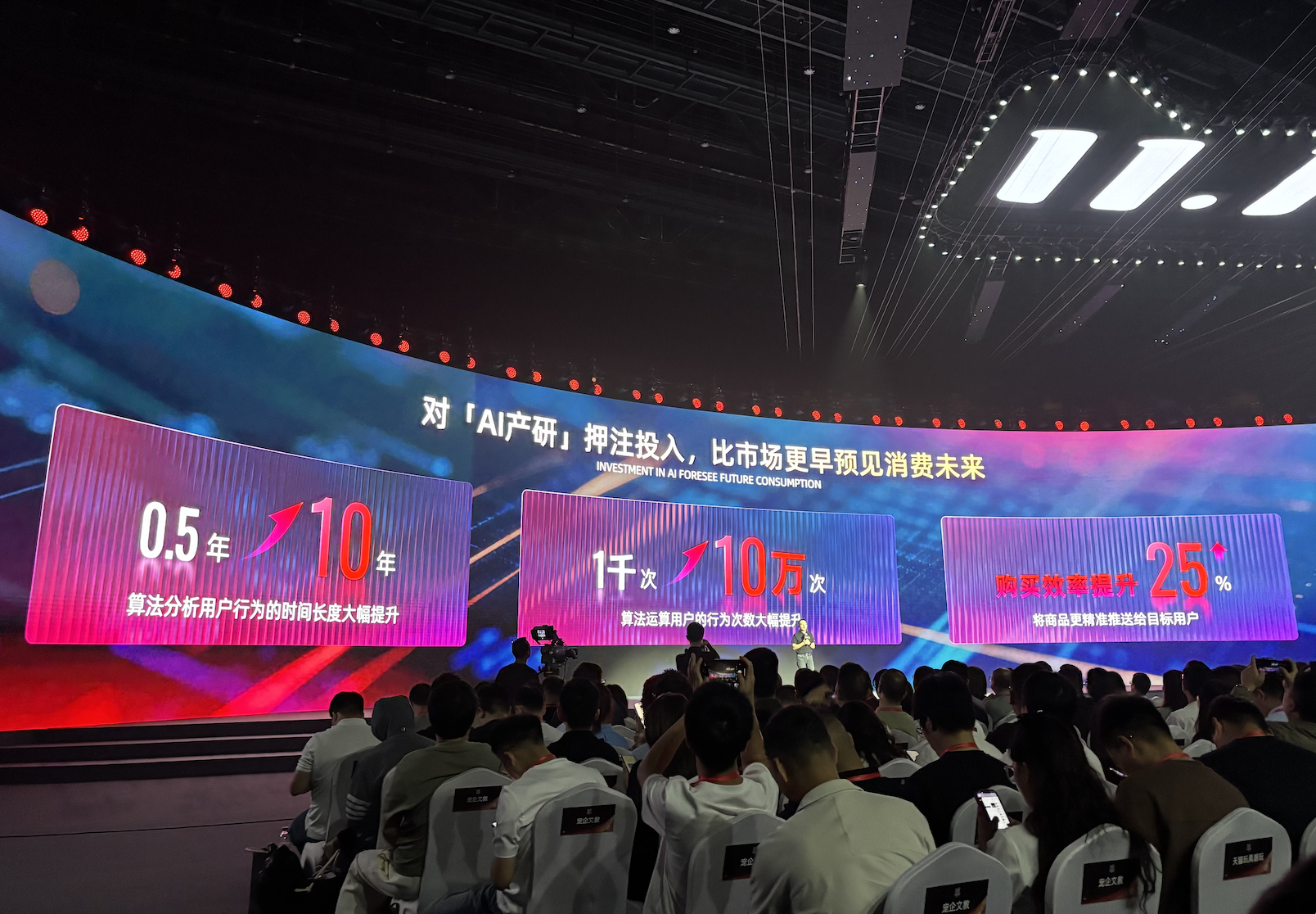 包括复杂语义下搜索相关性提升20个百分点,推荐信息流点击量提升10%,商家广告ROI提升12%,凯夫表示,这对万亿规模的平台来说,效率提升几个点都是巨大的商业价值。家洛也透露,这些能力升级让天猫看到,今年暑期获得了过去三年以来最高速的增长。