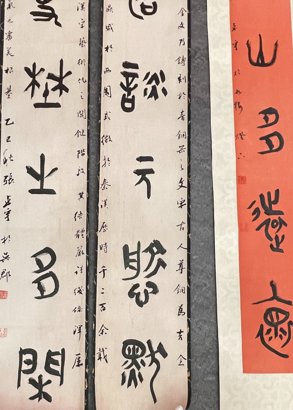 也正是这一原因,无论是初评还是复评中,评委们特别加强了文字审读,关注书法与文字内容的结合,如在终评时,一件入选的金文书法作品无论是技术还是结构都颇有佳处,然而却因多处文字硬伤(如将“玄”写作“元”,将“閒”写“閑”)最终在审读中被评委一致同意退出终评。