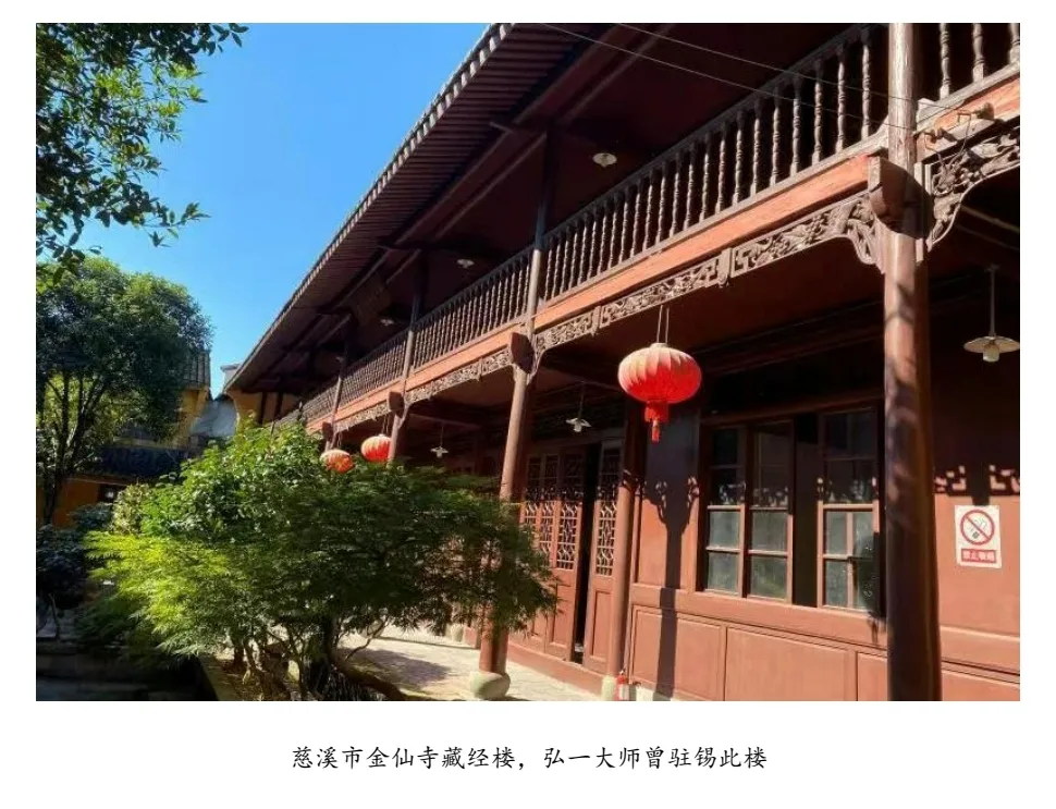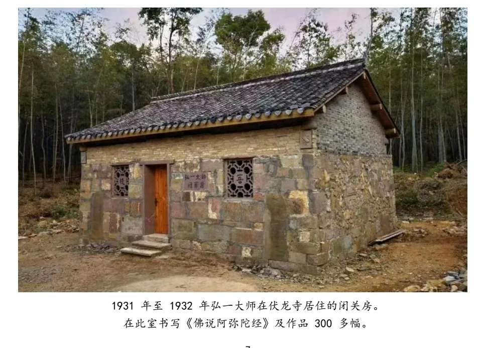 此外,弘一法师亦曾驻锡慈溪金仙寺,缀辑《华严集联三百》;于五磊寺创办南山律学院;在金仙寺、五磊寺、伏龙寺等地驻锡长达三年。这一时期,他完成了毕生重要代表作《佛说阿弥陀经》,标志着“弘一体”书风的成熟,伏龙寺也因此被后人尊为“弘一体书风发祥地”。宁波堪称弘一法师弘化活动较为集中的地区,正如他本人所言:“只有很深很深的缘分,才能在同一个地方去了又去。”