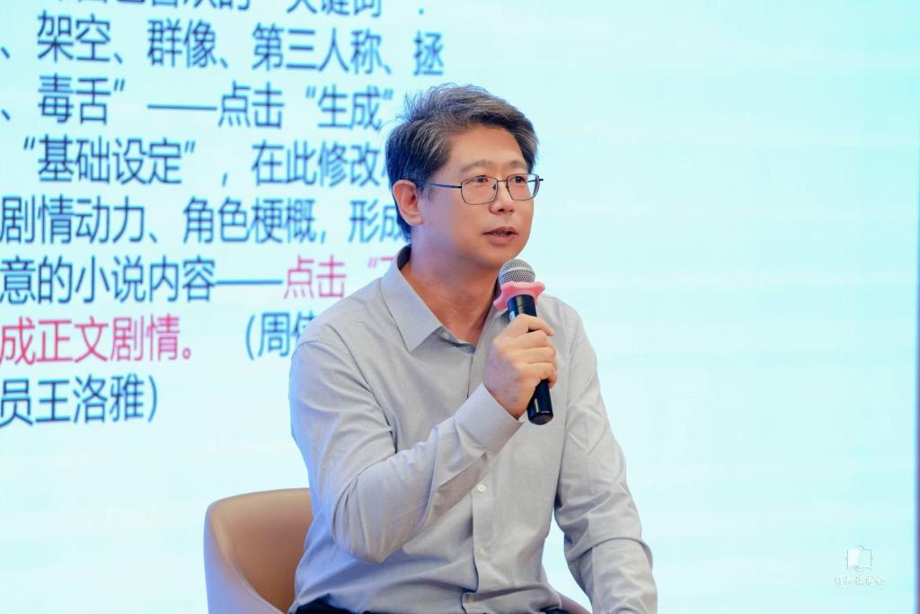 当下,在高科技的助力下,阅读在新的时代中已经发生了深刻改变,同时又以新的方式影响世界。华东师大传播学院院长王峰现场围绕AI浪潮的话题与观众展开互动,随后他向大家展示了他团队新开发的小说创作大模型,分享该大模型如何进行长篇写作,具象呈现科技对写作的改变。