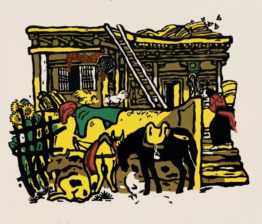 农家 鄂圭俊 套色木刻 1982年 38×42cm 浙江美术馆藏