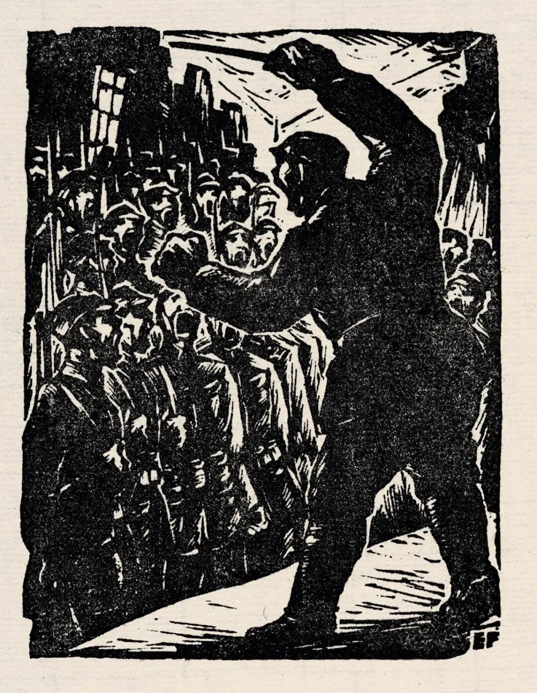 到前线去 江丰 黑白木刻 1931年 23.8×17cm 上海鲁迅纪念馆藏‍