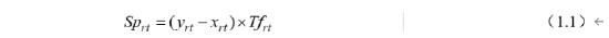 Sprt为输入端体制闸板变量面积,yrt为市场竞争通过经济流量占总流量分布比例标准值,xrt为中国二元体制扭曲通过经济流量占总流量分布比例扭曲值,Tfrt为某一被利用资源经济流动总量。