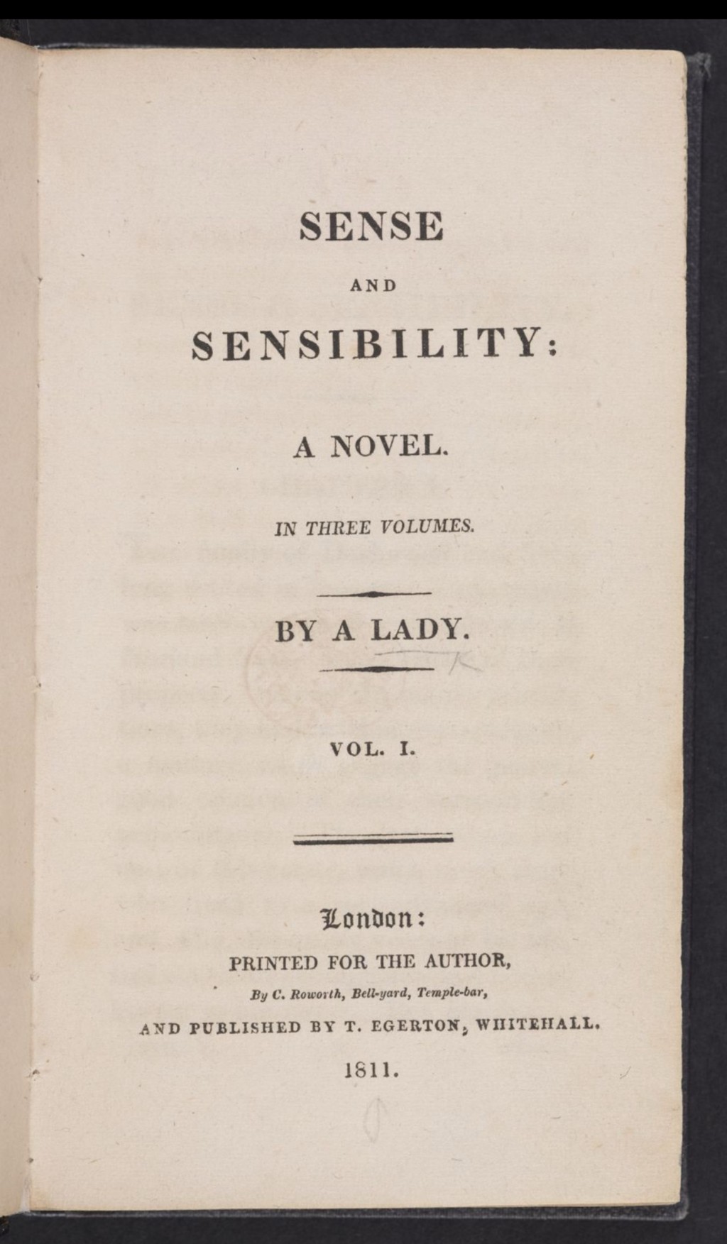 大英图书馆 简·奥斯汀《理智与情感》第一版扉页,图片来自大英图书馆馆藏。