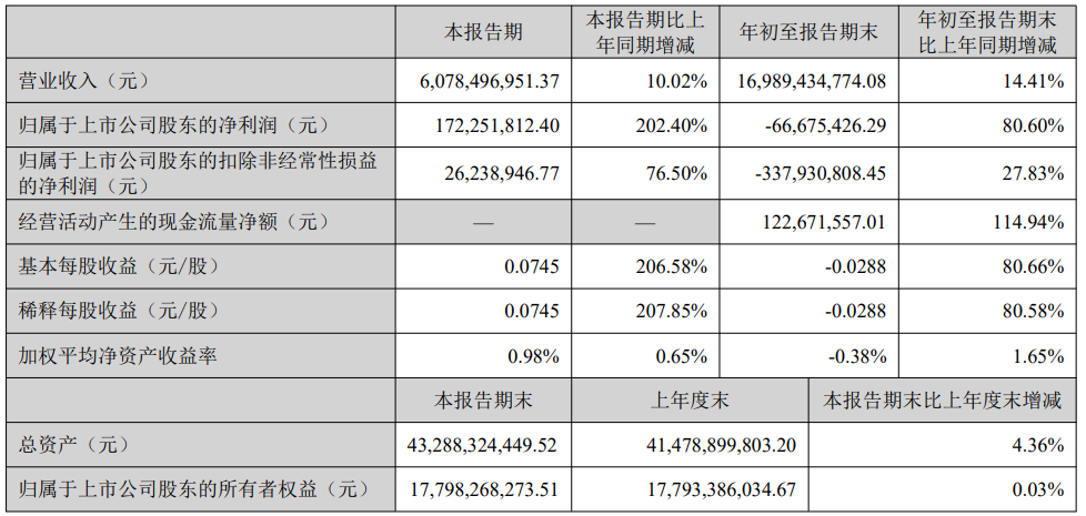 10月20日晚间,科大讯飞股份有限公司(科大讯飞,002230)发布三季度报告。第三季度实现营业收入60.78亿元,同比增长10.02%;归母净利润1.72亿元,同比增长202.40%;扣非净利润2623.89万元,同比增长76.50%;经营性现金流净额8.95亿元,同比增长25.19%,实现季度净利润与现金流的转正。
