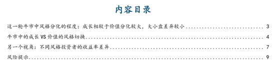 1 这一轮牛市中风格分化的程度:成长相较于价值分化较大,大小盘差异较小